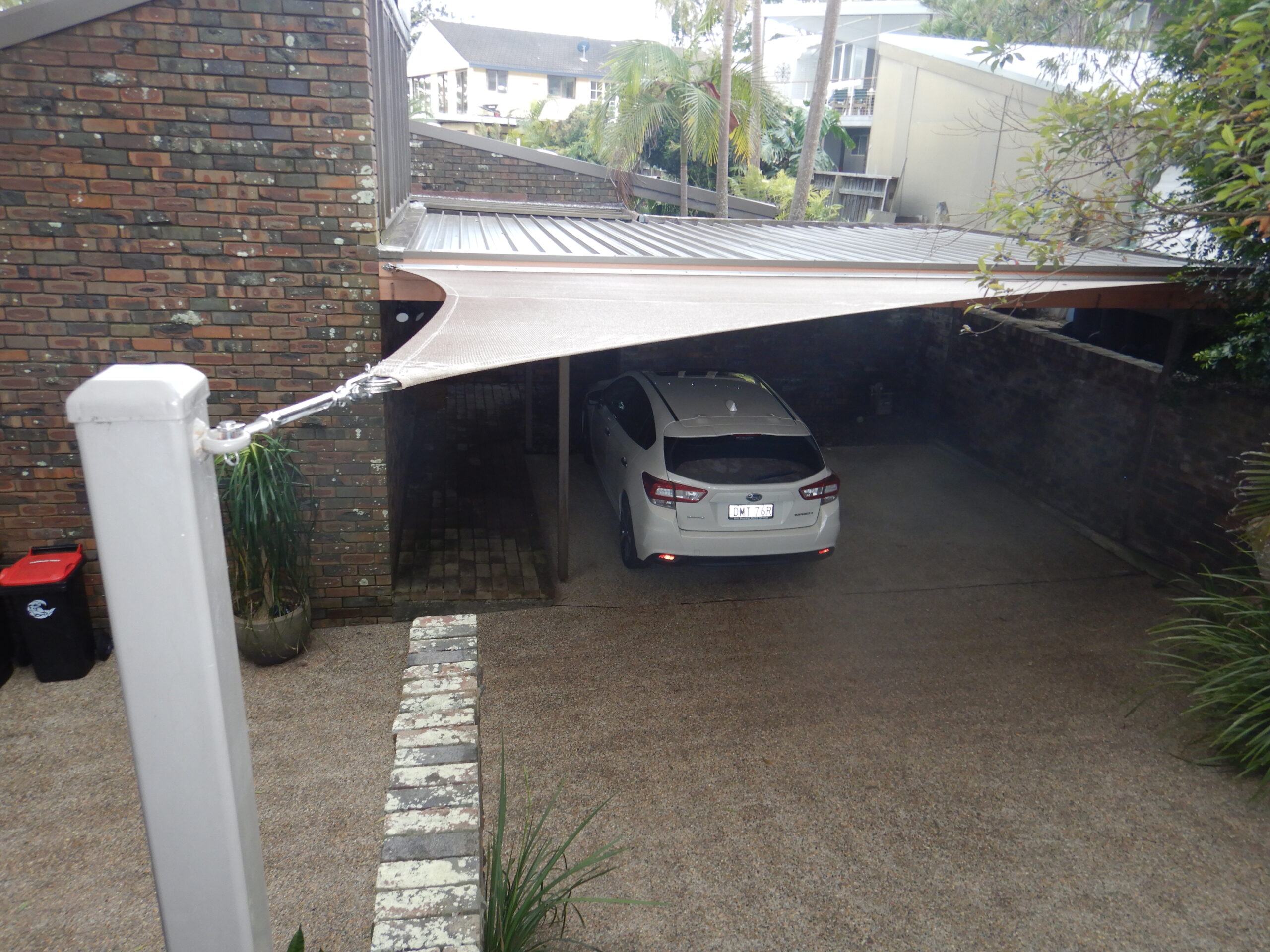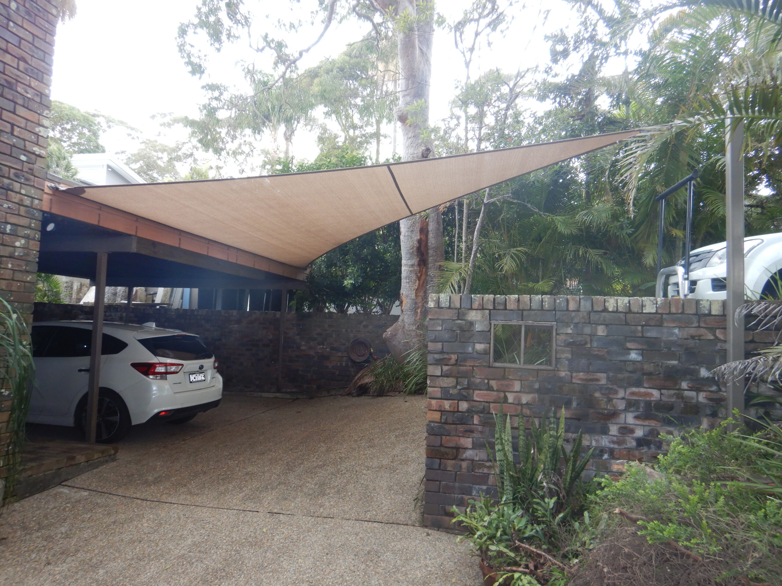 Each Sail Carport is engineered for durability and made using high-quality shade fabrics that are tested for UV performance. Darker, tighter woven materials block more UV radiation, while lighter colours create a softer filtered shade. Our design team will recommend the best fabric and colour to achieve your preferred look and level of protection.